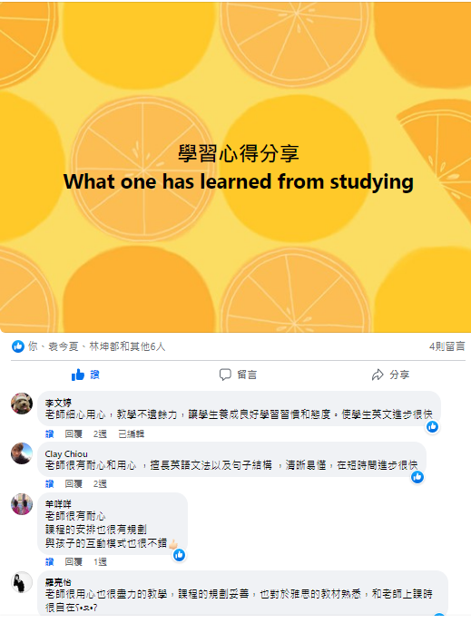 老師用心上課,小朋友也進步很快,很高興能遇到有經驗的好老師!!
