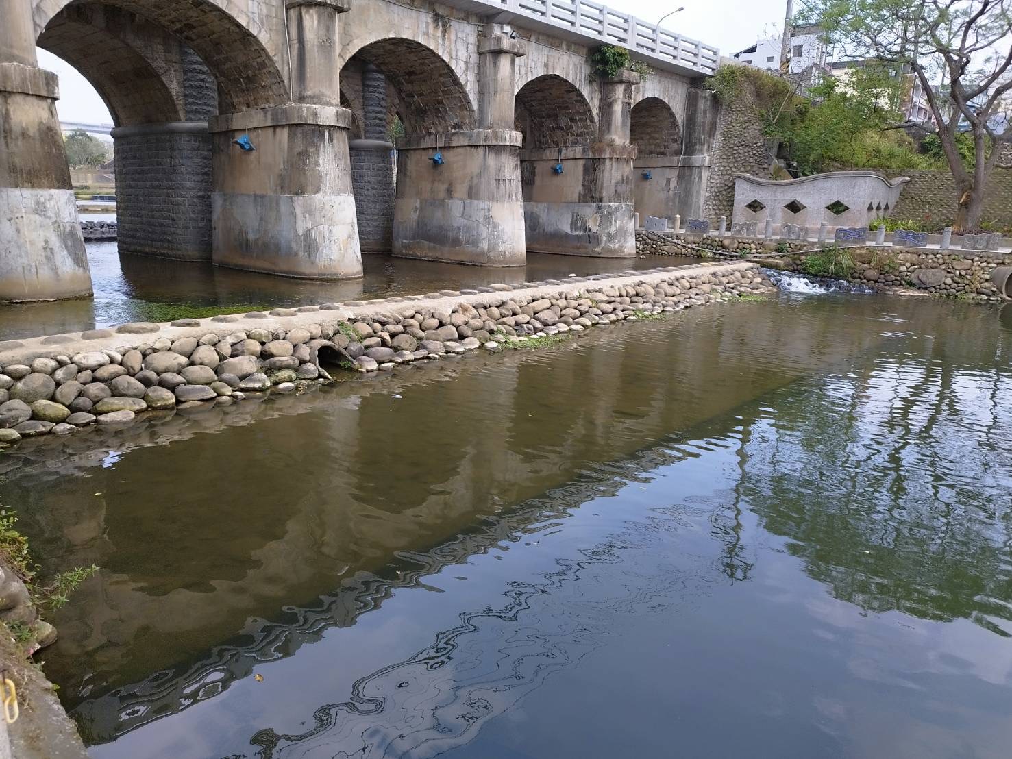The current version of Guanxi Township's (關西鎮) Dong-An Bridge (東安古橋) is a beautiful stone arched bridge that dates back to 1933 (昭和8年) and has survived over eight decades thanks to the superb construction techniques and design brought to Taiwan from Japan.
